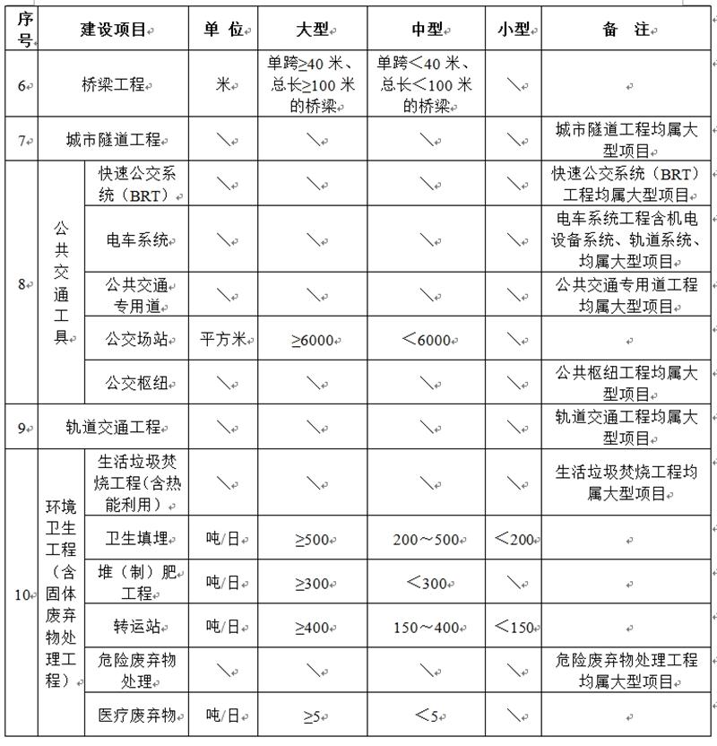 市政行業(yè)建設(shè)項(xiàng)目設(shè)計(jì)規(guī)模劃分表