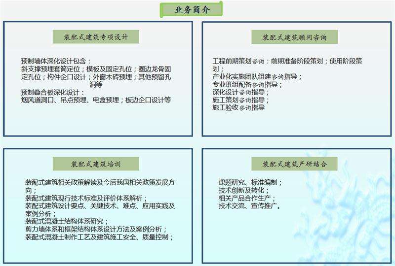 承攬【裝配式建筑】設(shè)計、咨詢、培訓(xùn)、檢測認證、產(chǎn)研等業(yè)務(wù)