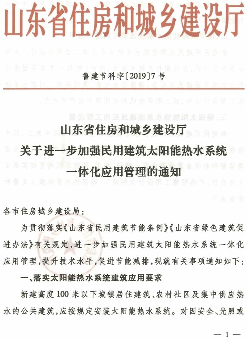關(guān)于進一步加強民用建筑太陽能熱水系統(tǒng)一體化應用管理的通知